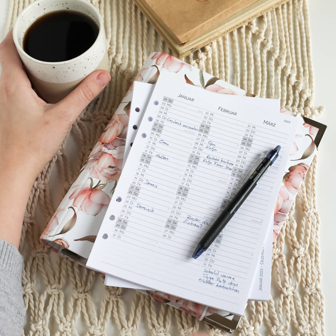 Wenn du dich unzufrieden und unausgeglichen fühlst, ist dies ein Zeichen dafür, dass du in deinem Leben etwas ändern solltest, um dich wieder wohl zu fühlen. So war es auch bei mir. Einst war ich von einem regelrechten Durcheinander in meinem Kopf geplagt. Mein Leben war unstrukturiert und ich hatte Stress. Am Ende des Tages war ich müde und hatte das Gefühl, überarbeitet zu sein. Es hat sich wie ein Kampf gegen die Windmühlen angefüllt, denn die To Do Liste schien immer länger zu werden. Für meine eigenen Bedürfnisse fand ich kaum mehr Zeit. Mir wurde klar, dass eine Änderung hermusste. Und so kaufte ich mir 2016 meinen ersten Ringbuchkalender. Allerdings gab es kein passendes Design, dass meinen Bedürfnissen entsprochen hat. Und so habe ich mir selbst eines erstellt. Dies war der Zündfunke von Kalenderglück, der mittlerweile schon vier Jahre zurückliegt.