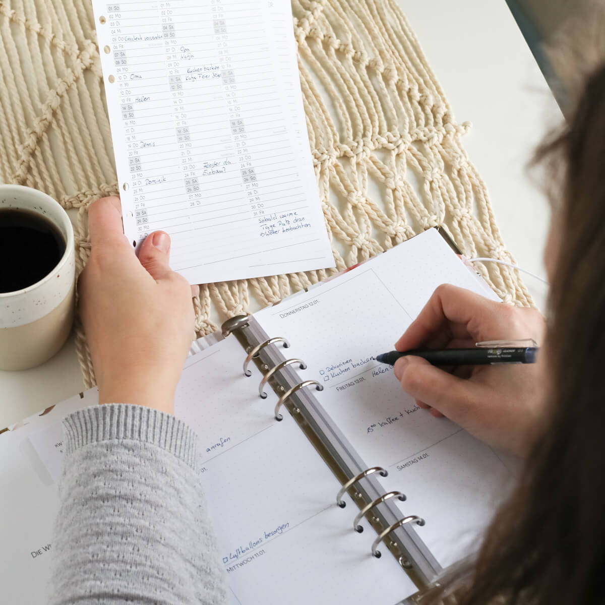 Auch mit diesen Kalendereinlagen hast Du die ganze Woche auf einen Blick. Der Vorteil der Spalten ist es, dass die Termine chronologisch eingeteilt werden können. Die Termine am Morgen stehen gleich am Anfang und die des Abends am Ende der Spalte.